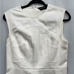 Derek Lam New York Cream Denim Stretch Form Fitting Knee Length Sleeveless Dress