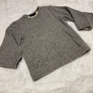 Derek Lam New York Gray Distressed Wool Blend short sleeve oversized Sweater Med