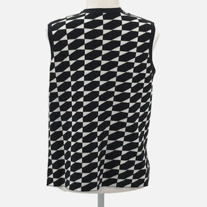Derek Lam New York V Neck Geometric Print Italian Yarn Sweater Vest - Medium. Excellent pre-owned condition. This piece is from the original Derek Lam luxury collection. It was closed down about 5 years ago so these pieces will become a rarity. Created with Italian yarn. Extremely soft! V neckline, cropped length, modal and polyamide, side splits at hemline. It has kind of a swing silhouette which would make it a more relaxed fit. Colors are black & white.