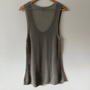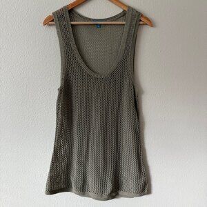 Derek Lam Open Stitch Army Green Wet Sand Crochet Tank Top Size L