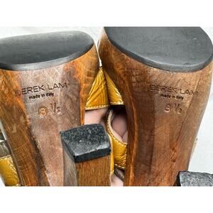 Derek Lam Orange Brown Patent Leather Slingback Platform Wooden Heel Sandals 8.5