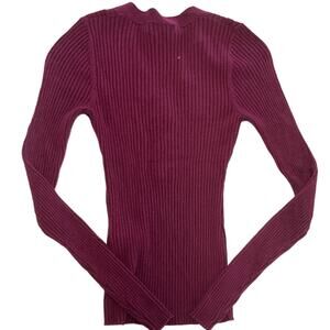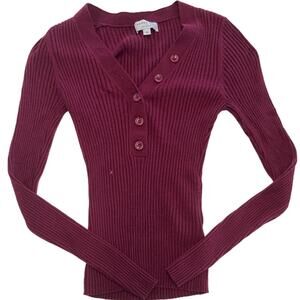 Derek Lam Sweater Womens Small Red Henley Ribbed Knit Stretch V Neck