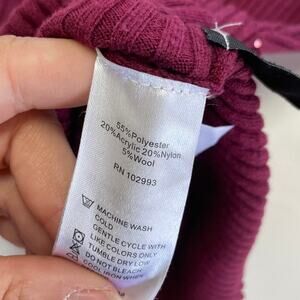 Red knit (55% Polyester, 20% Nylon, 20% Acrylic, 5% Wool). Sweater. Long sleeves. V-neck. Pull on. 24" from shoulder to hemline. Imported.