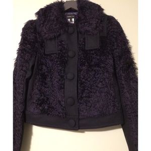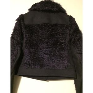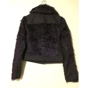 New Derek Lam Teddy Shearling Wool Trim Jacket. Size: 4. Color: Navy. Spread shearling collar. Button-front closure. Long sleeves. Shearling/wool shell. Lined. 2 side pockets. 21" center back length (approximately). Kindly note: final photo is for your styling reference only and does not represent the same jacket.