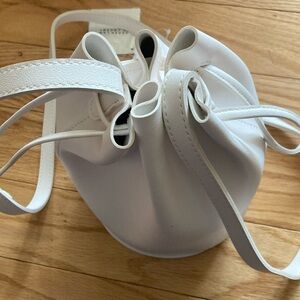 Discover the elegance of the Derek Lam White Backpack shoulder bag , crafted with a minimalist aesthetic and smooth leather-like finish. This chic accessory features a structured design and a convenient drawstring closure, making it a perfect blend of style and functionality for any occasion.