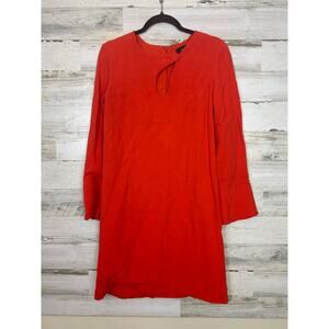Derek Lam Women’s 8 Orange Viscose Keyhole Long Sleeve Mod Midi Dress Designer