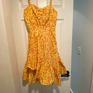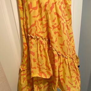 Derek Lam Women’s Sleeveless Midi Cotton Yellow Pink Ruffle Dress size 40 medium