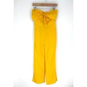 Derek Lam “Crosby” Yellow Strapless Sleeveless Smocked Back Jumpsuit with Front Bow – Size 8