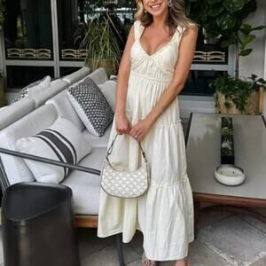 Derek Lam Yellow Tiered Ruffle Midi Dress Size 2 Cotton Cottage Designer $420