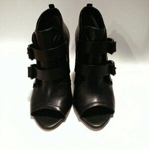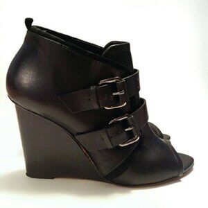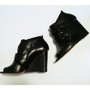 Derek Lam Zale boots open toe black leather wedge bootie
