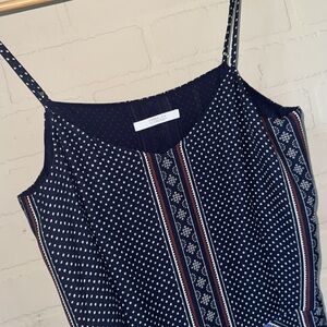 Derek Lam dress silk Navy & Red Printed Dress tiered adjustable straps like new