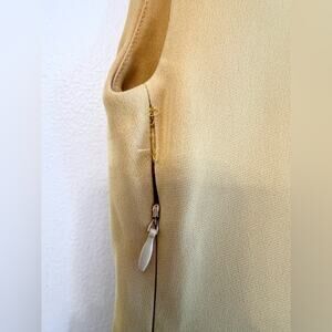 Derek lam yellow sleeveless dress. V neck with a full skirt. Hits about knee to midi length. Zipper entry at the side. Women’s size 2. Silk blend. The top of the seam at the zipper will need repairing eventually and there are some faint marks at the collar shown in photos. Priced accordingly!
