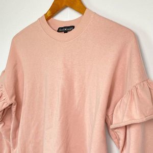 Derek Heart Light Pink Blush Rose Ruffle Long Sleeve Pullover Sweater