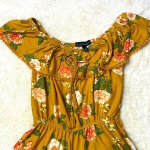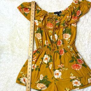 Derek Heart Womens/juniors Mustard Yellow Floral Ruched Romper Sz M