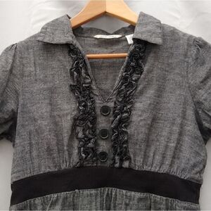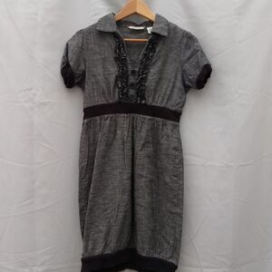 Size small. Good condition but has some strings in the waist coming out. No holes or anything like that. The bottom of this dress goes in some with an elastic bottom. Great dress for windy summer days since it won't fly up on you!