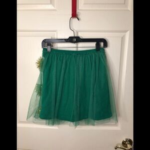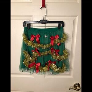 Derek Heart Christmas skirt with tinsel, bows and ornaments