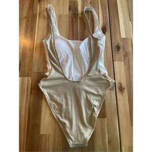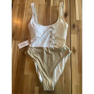 Derek Lam 10 Crosby Khaki Rib Knit Swimsuit One Piece