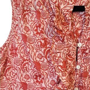 Derek Lam Collective Women's Red And White Floral Ruffle Front Blouse Size 42