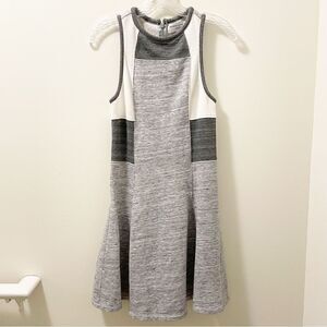 Derek Lam 10C Gray White Dress XS Downtown flared paneled grey color block dress Terry fabric mini dress with flared hem and invisible back zipper.
