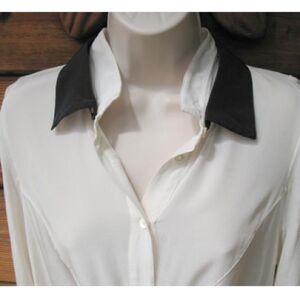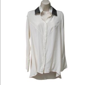 Derek Lam 10 Crosby Double Collar Long Sleeve Silk De Chin Hi-Lo Blouse, Size S/M
