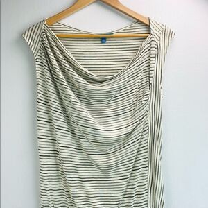 Derek Lam Linen Blend Drop Hem Striped Relaxed Casual Dress Cream