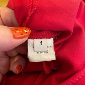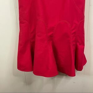 This cute dress is in great pre-owned condition. The only flaw is a small brown mark on the front. The dress has insets Selene into the bottom that make a wavy effect at the hem of the dress. The back has an exposed gold zipper. This dress was made exclusively for sale at Barney’s New York.