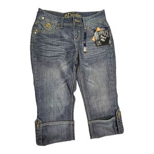 Dereon Beyonce Jean Shorts Women ½ Blue Embroidered Denim Medium Wash Mid Rise