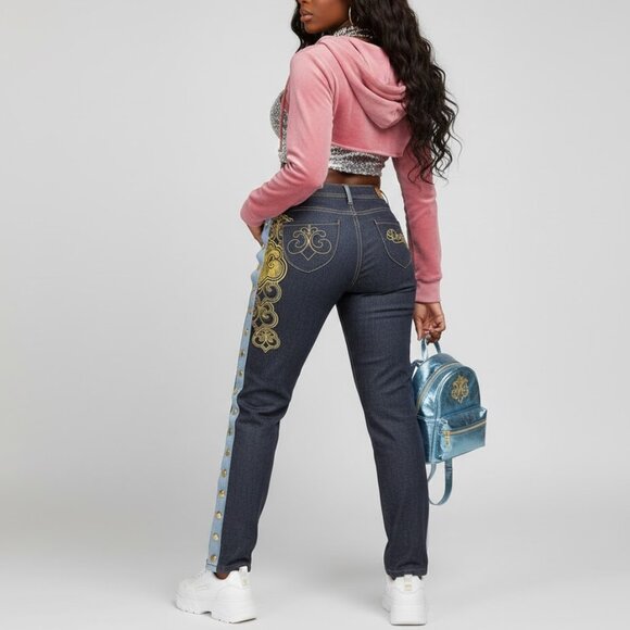 Aesthetic: Y2K Glam Streetwear Beyonce Era Throwback Embroidered Denim