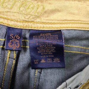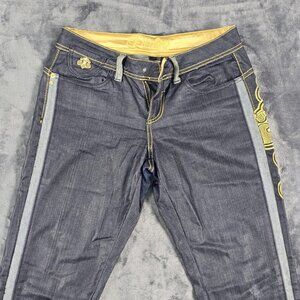 Dereon Jeans Womens 5/6 Dark Wash Skinny Snap Leg Gold Embroidered Logo