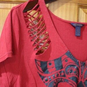 Dereon Red & Black Graphic Cut Out Sexy Edgy Distressed Top 1X