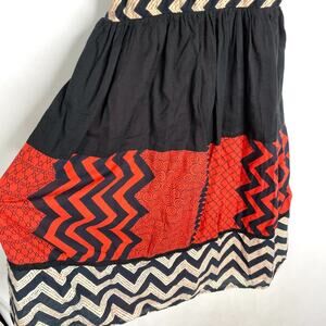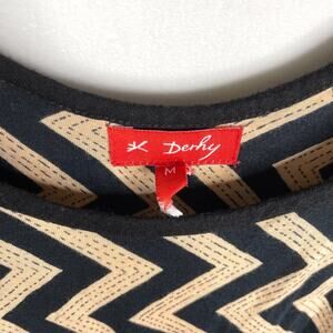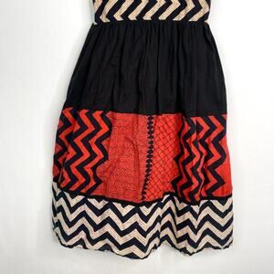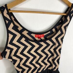 Derhy sleeveless tie waist fit and flare style dress with chevron stripe and color block design. Size medium. In great condition!