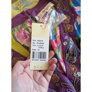 Derhy Women’s Medium Purple Violet Nanouk Floral Kimono Style Wrap Jumpsuit NWT