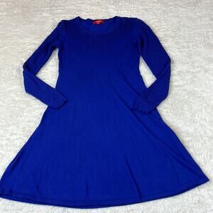 Derhy blue long sleeved mesh detail fit and flare dress, size small