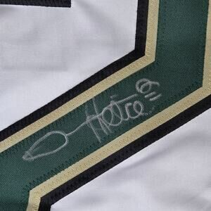 This custom Dallas Stars jersey is hand-signed by longtime captain Derian Hatcher. The autograph is placed cleanly on the back number in silver marker and includes Beckett Witness certification for guaranteed authenticity. The jersey is an M.R.A. custom-made fan style and is intended for display rather than on-ice wear. A great piece for collectors of Stars memorabilia or fans of Hatcher’s leadership during the Stanley Cup era.