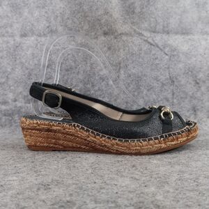 Used Derimod Shoes Womens 37 Sandal Espadrille Slingback Fashion Peep Toe Black Wedge
