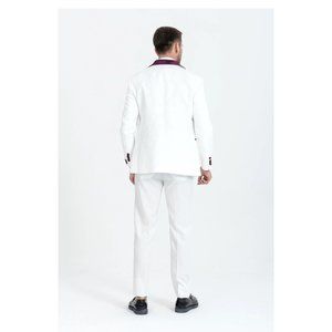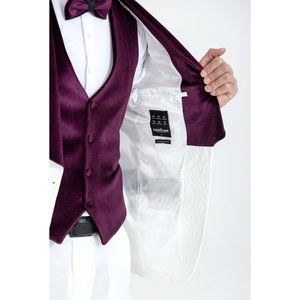 Derman Burgundy Luxury Floral Textured Velvet Collar 3 Piece Tuxedo