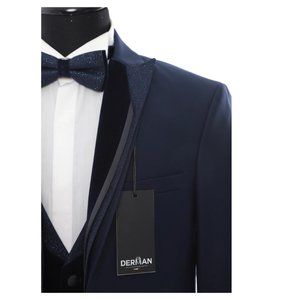 Derman Double Breasted Classic Silvery Collar Navy Tuxedo