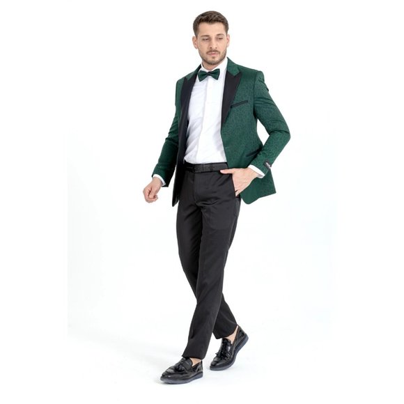 Derman Green Cracked Pattern Textured Fabric Tuxedo