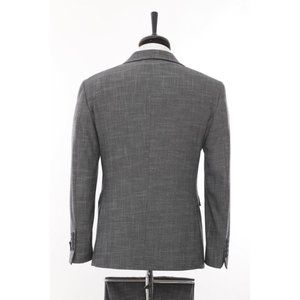 Features: Grey Classic Patterned Fabric 3 Pieces Suits