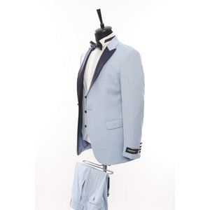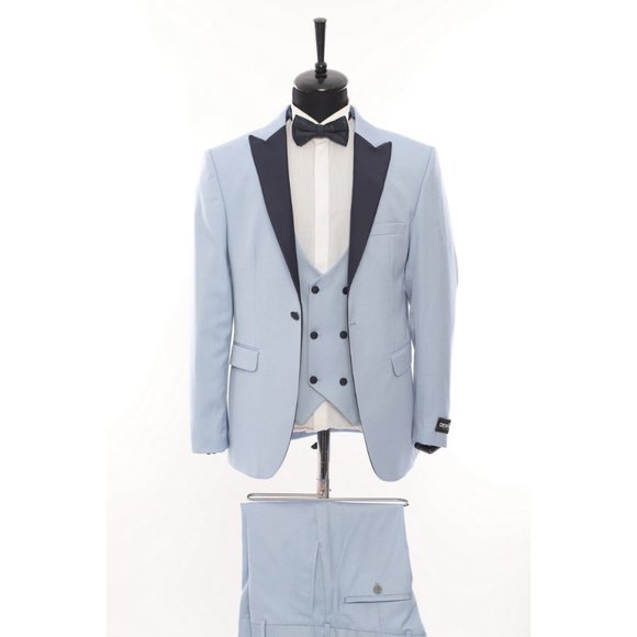 Derman Ice Blue Satin Collar 3 Piece Tuxedo