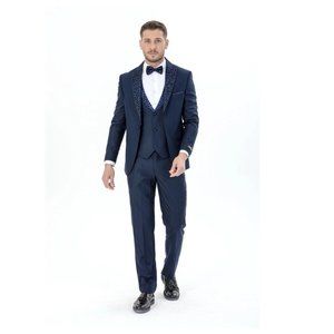 Derman Navy Luxury Patterned Collar Tuxedo Tuxedo 3 Piece