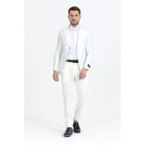 Derman White Floral Pattern Textured Fabric Tuxedo