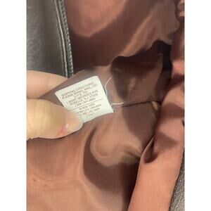 Excellent pre-owned condition. Fur is likely fox, but no tag inside to verify. There is a mark on the front of the jacket by the bottom of the zipper. Is hard to see unless under lighting.