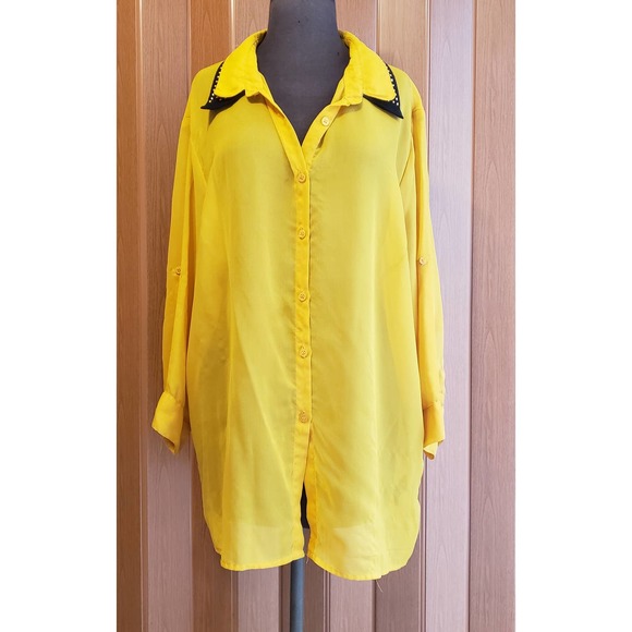 De'rotchild size 3XL yellow & black long sleeve button up blouse