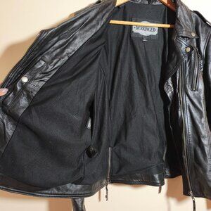 Derringer 100% Lambskin Leather Vented Moto Jacket sz L Black Silver Biker