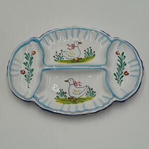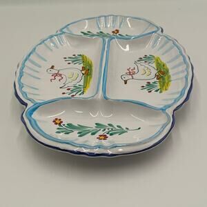 Deruta Italian HandPainted Geese Divided Platter 13.5x9.5 · Blue/White