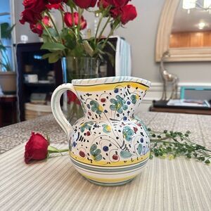 Deruta Orvieto Galleto Rooster Pitcher Handpainted Made in Italy 6.9” tall RARE
