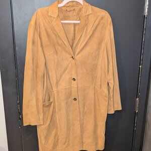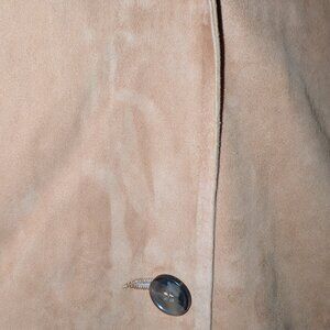 Desa 1972 Tan Suede Jacket. With collar and 3 buttons, and with buttons at the end of the collar. Light weight jacket. The jacket is in great condition, just needs a steam to take out wrinkles. I am 5'4" and it hits right at my knees.