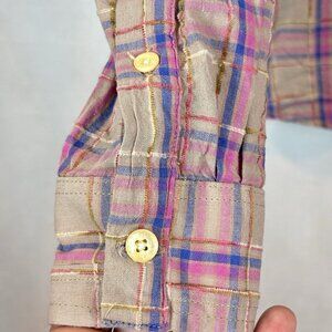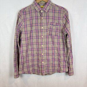 Descendant of Thieves Men's Pink Brown Unique Raised Plaid Button Up shirt SZ M