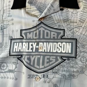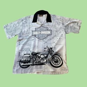 Description: vintage y2k biker Harley Davidson All Over Print button up shirt, size xl, and no signs of wear or tear